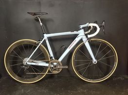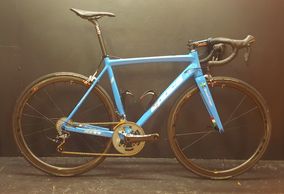 Customer designed paint scheme. All paint work by YR1. Complete over-haul to all group set components. Campagnolo 1999 Record hub conversion to 11/26. Campagnolo Delta wheels built by YR1.